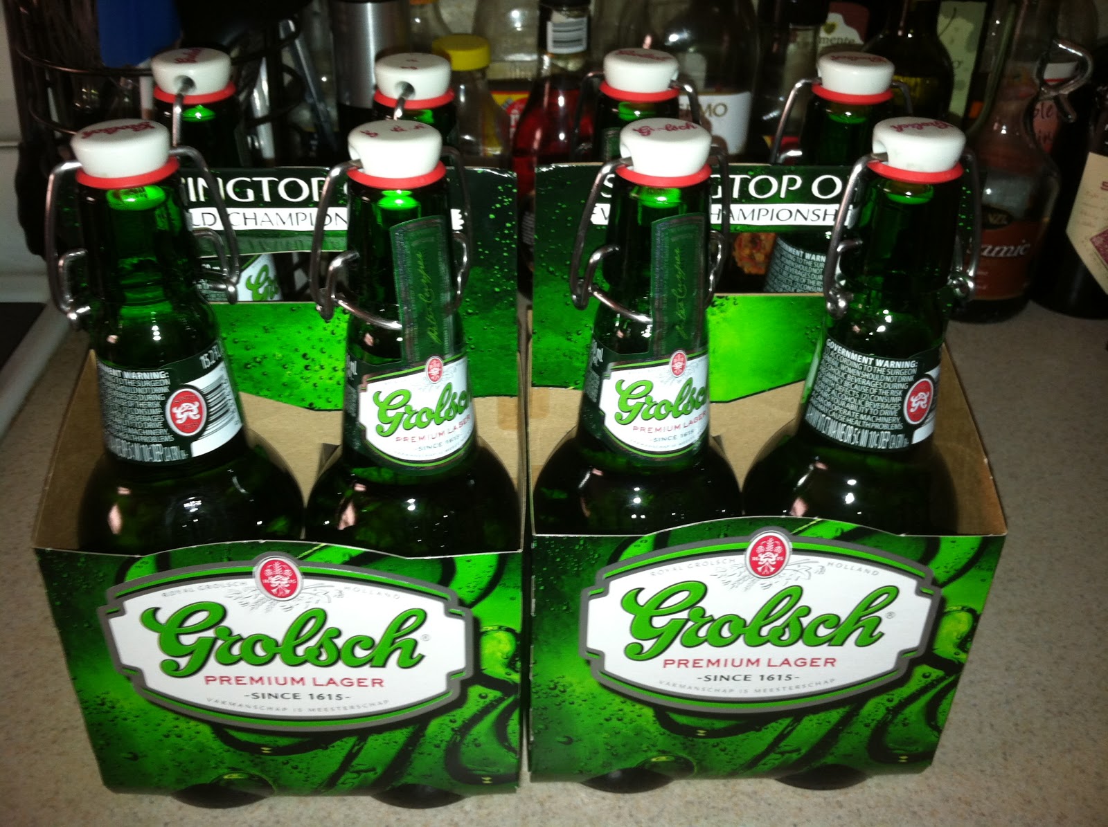 Grolsch bottles are freakin’ awesome. They have that nifty, flip top thing, they’re fancy looking and they’re perfect for bottling a pint (just shy, actually) of home brew. Fliptop bottles sell for $1-$2 each or you can get them for $2.50 filled with not-terrible beer. I’ve opted for the latter. It’s all I’ve bought for the last week and my collection is coming along nicely.